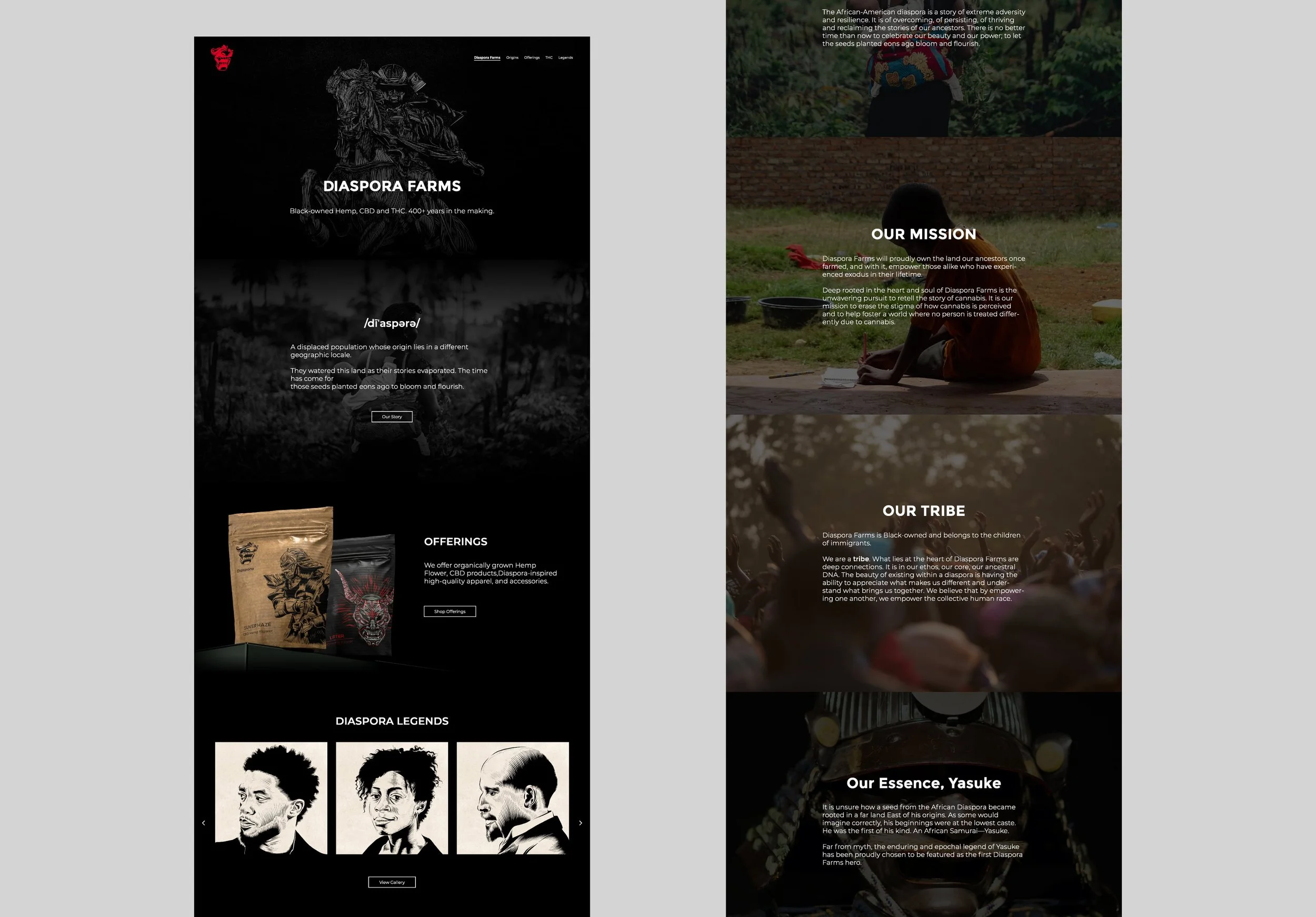 The brand mark was greatly impacted by an ancient legend of the African diaspora, Yasuke. The first ever known African samurai in Japan. His story is one of persisting, overcoming and thriving against all odds.