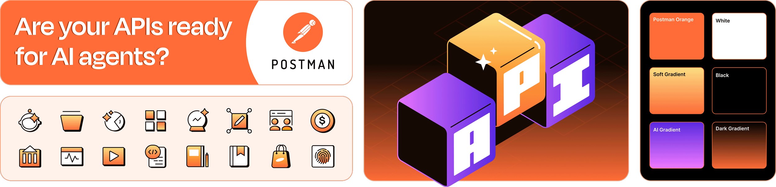As a Staff Visual Designer on the creative team, I've spent the last few years shaping how Postman shows up in the world. The work spans brand identity and design systems, advertising, campaigns and go-to-market, illustration, editorial and publications, event and experiential design, presentation design, activations, social media, web, and marketing collateral. Diverse in form but connected by a consistent visual language built to support Postman's mission and scale with the brand.