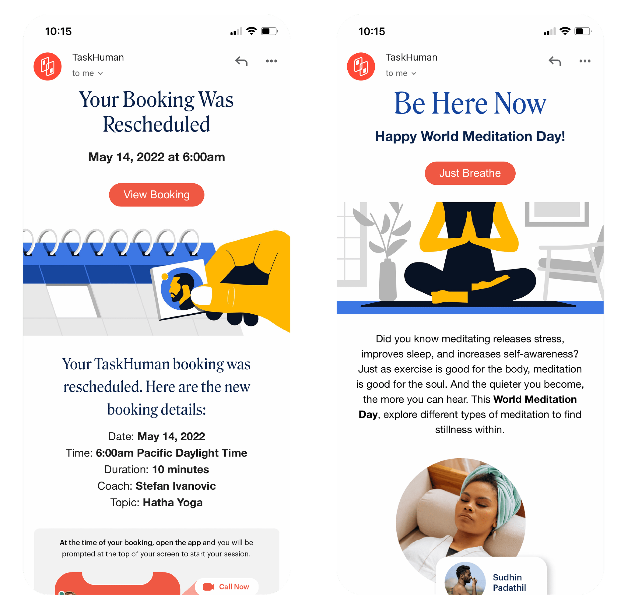 A variety of visuals were created for blog posts, email campaigns, sales decks, pitch materials, and other marketing uses. These illustrations highlight different product scenarios and user experiences while reflecting key coaching topics featured in the TaskHuman offerings.